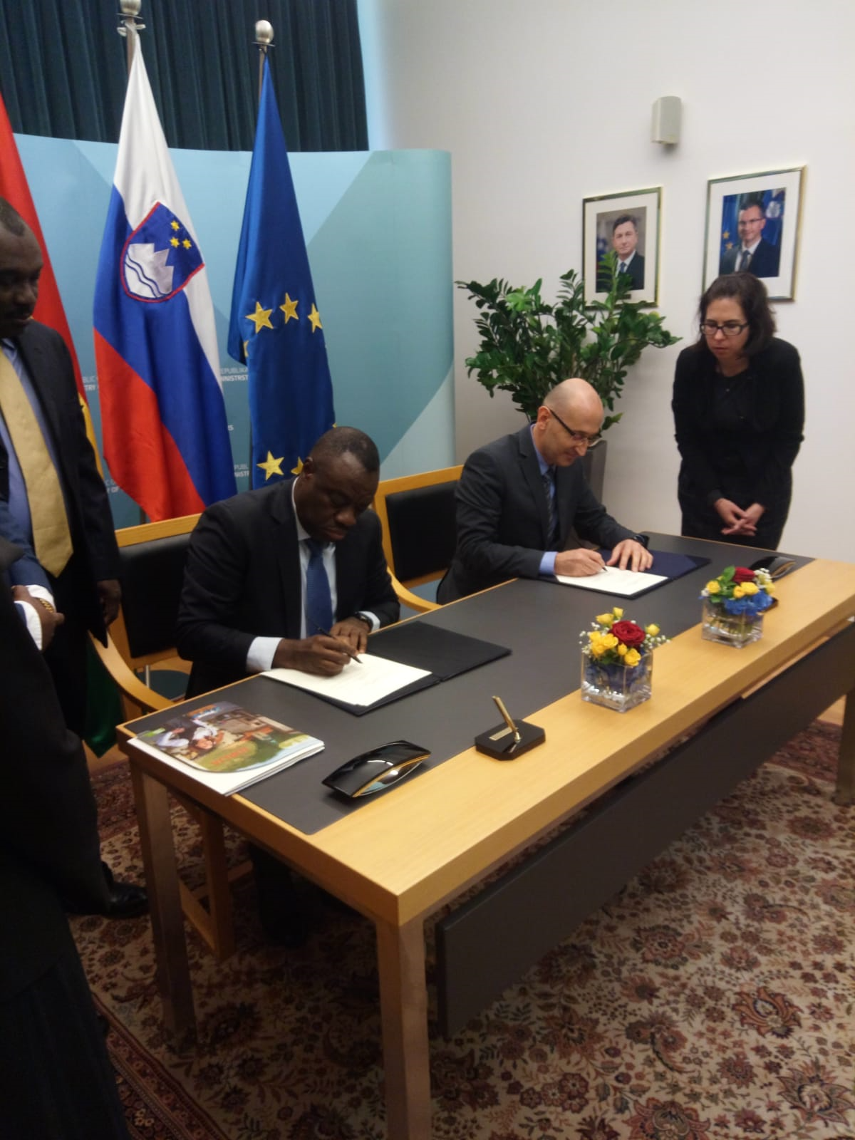Minister for Business Development Dr Mohammed Awal signs MOU on behalf of the Ghana Government on Economic Cooperation.Deputy Foreign Minister, Mr Dobran Bozic signs on behalf of Slovenia.
